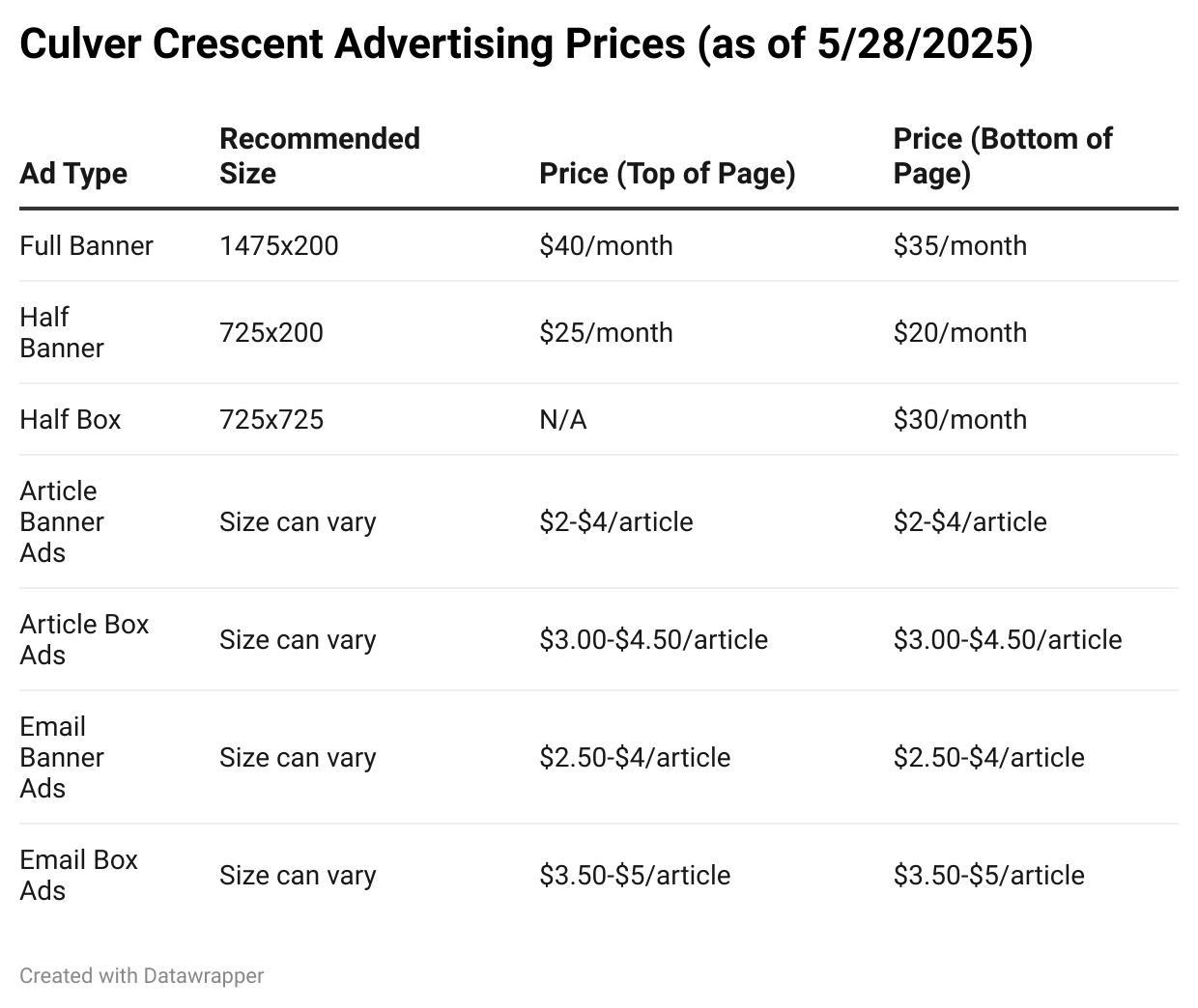 Advertise with Culver Crescent
