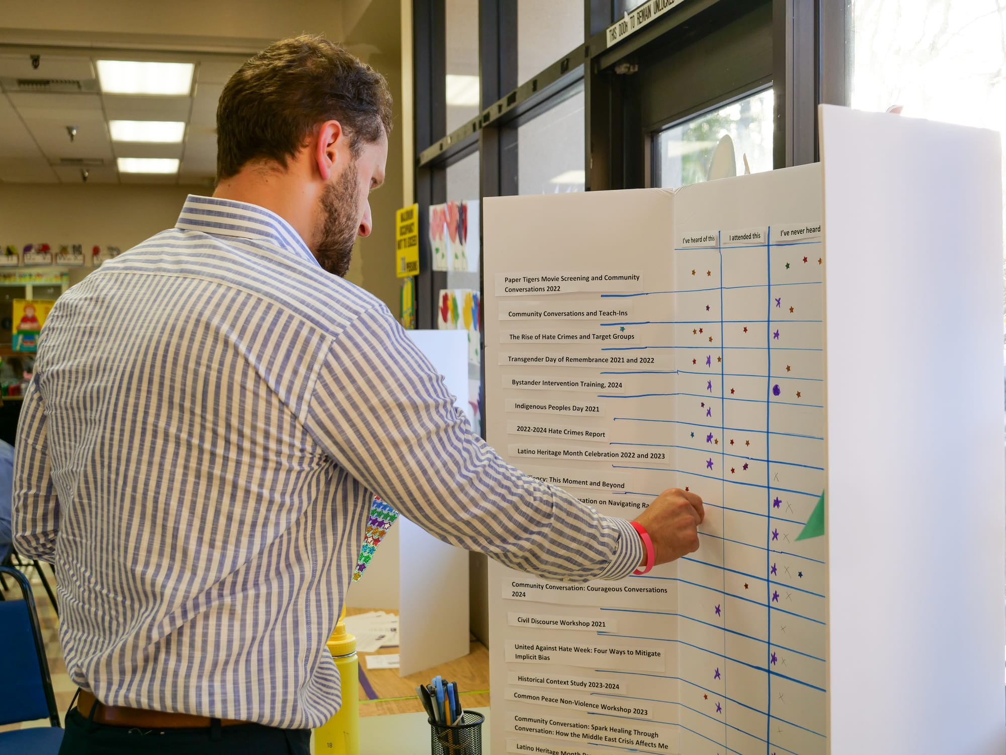 A third activity had participants identify some of the events in the city spanning back several years that are part of current efforts around creating equity. These events included those focused on race, like Latino Heritage Month Celebrations in 2022 and 2023 and the Courageous Conversation on Race Relations, but also things like the 2023 Community Conversation on Ageism.