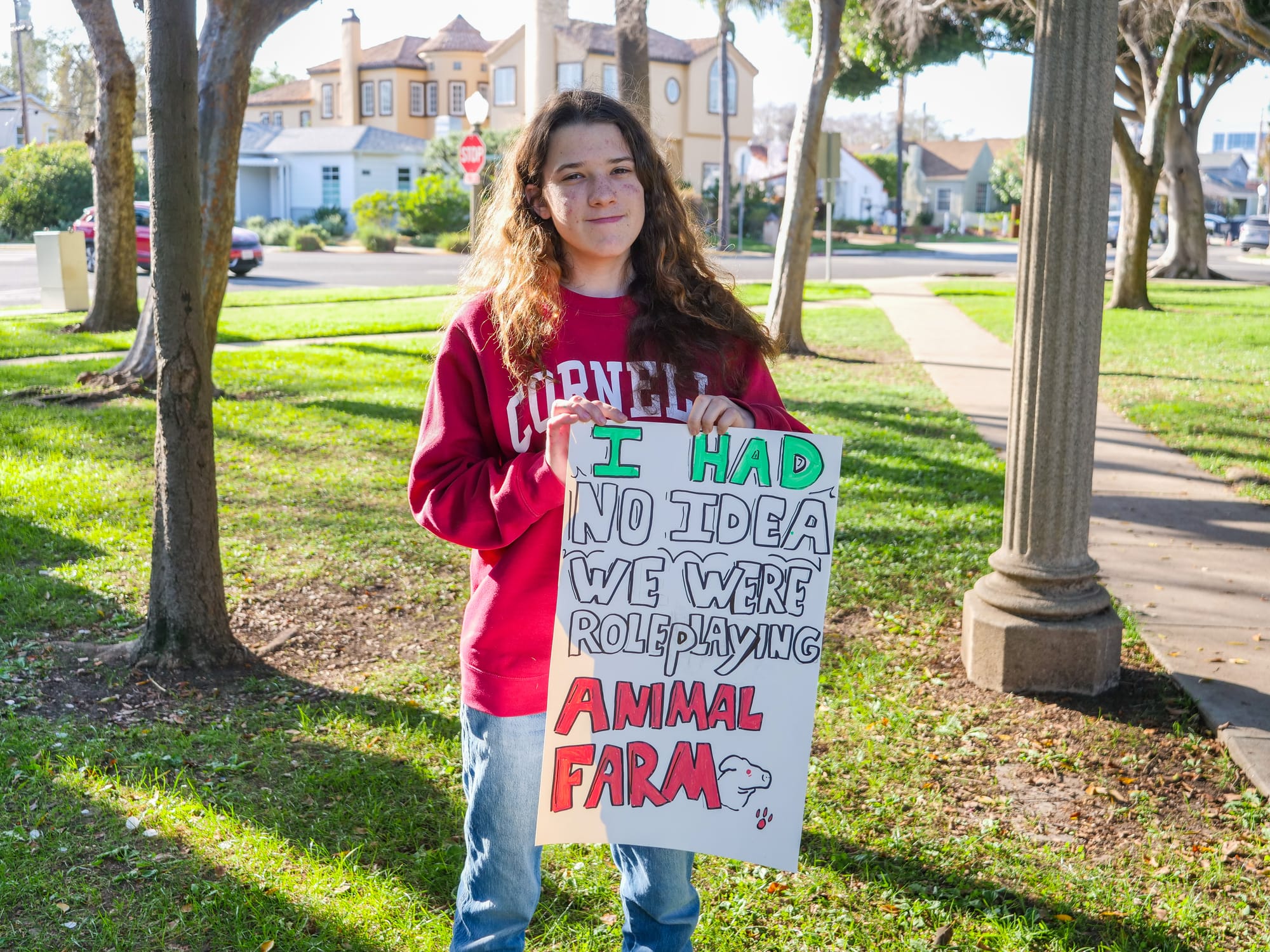 Barber called on George Orwell’s notorious Animal Farm for the sign she made on Friday. An avid writer and reader, Barber said she could connect many details from that book to the way the United States is operating today. Several students expressed their dismay with the state of the country and the Trump Administration after watching videos of the two events.