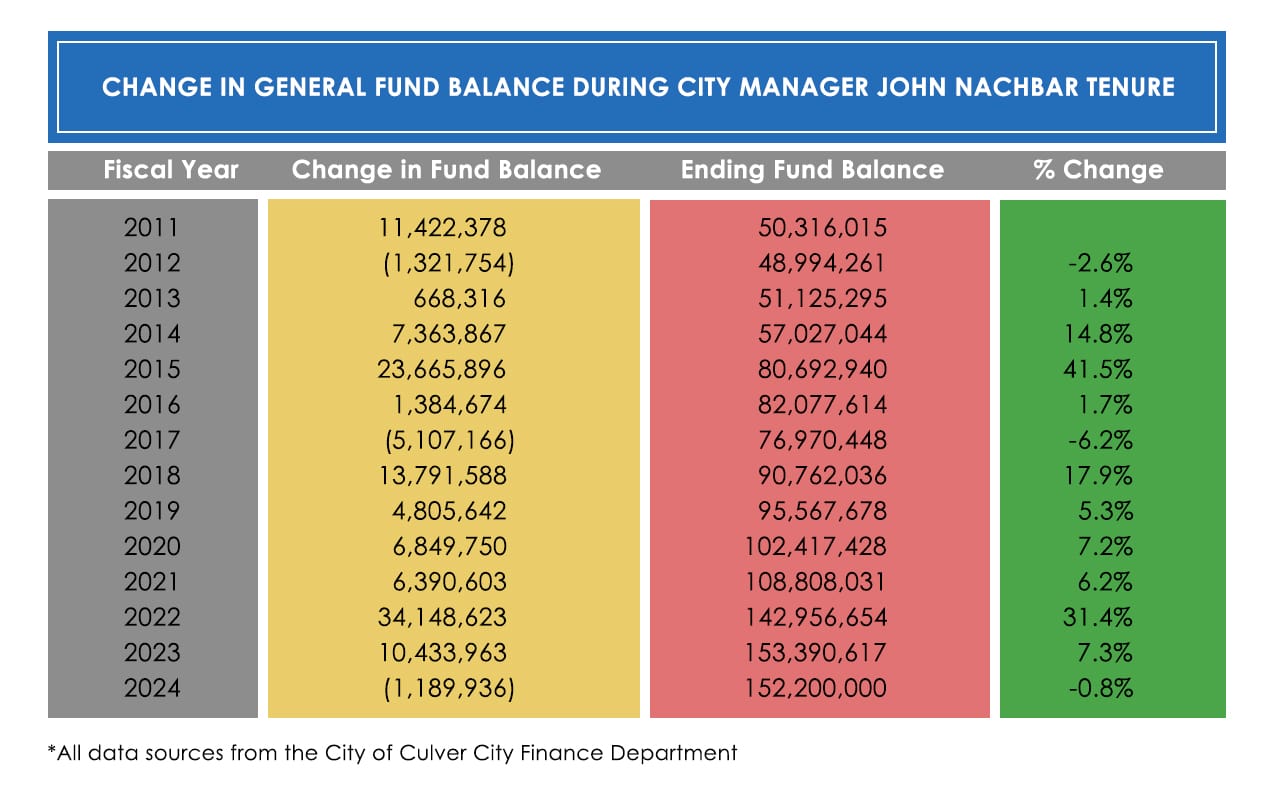 One letter from Nancy Barba states that in Culver City, “a chronic imbalance between revenues and expenditures dates back at least to 2010.” The facts tell a different story: