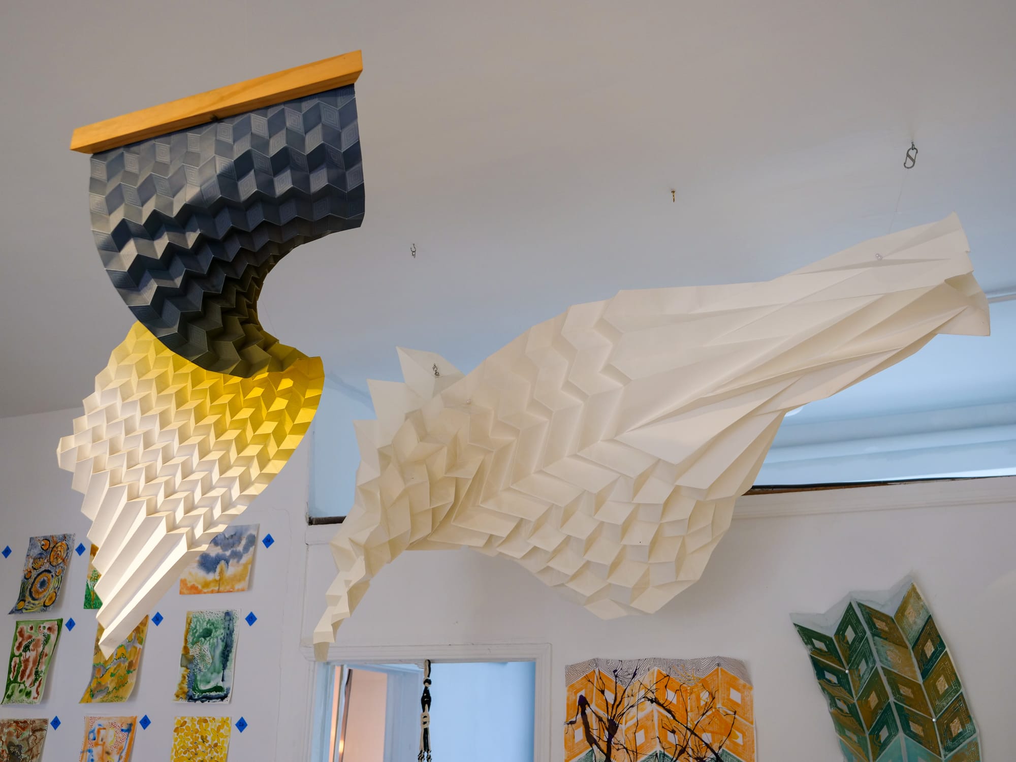 This Culver-based artist, formerly an architect, folds paper using patterns called Miura-ori to create artwork that bends and folds with gravity.