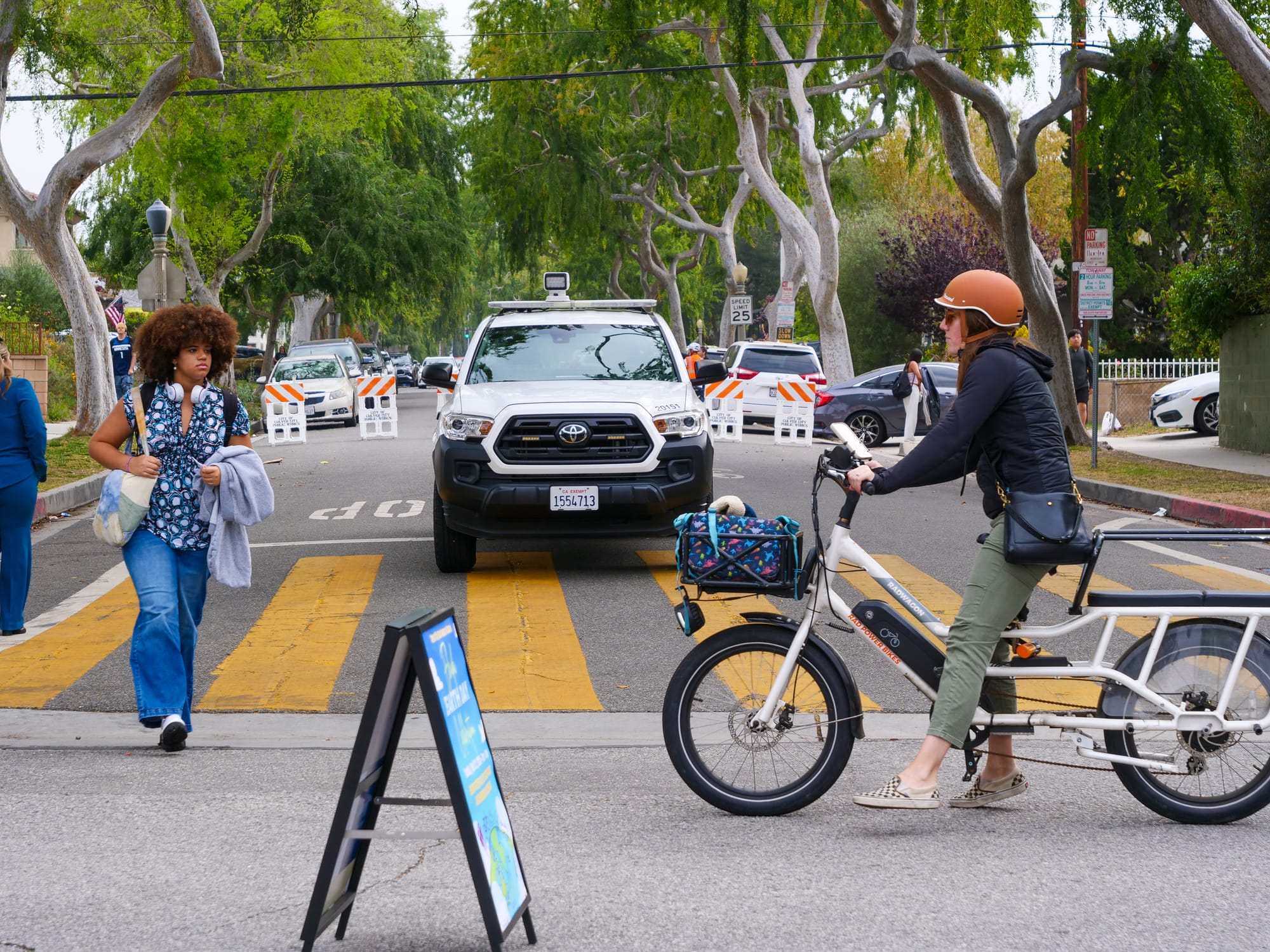 Walk 'n Rollers, a local advocacy nonprofit, teamed up with Culver City to close Elenda Street to vehicle traffic Tuesday morning, allowing students to walk, bike, and scooter more freely to school.