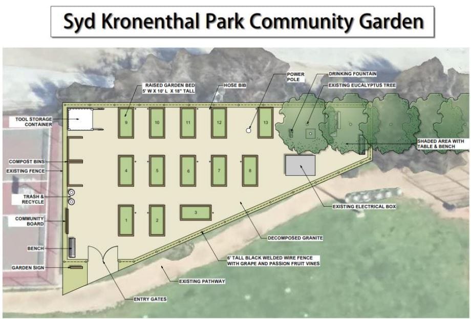 Part of the project includes the removal of several palm trees at each site. There are three palm trees near each of the community garden sites, with the trees at Syd Kronenthal Park considered particularly troublesome due to their proximity to utility lines.