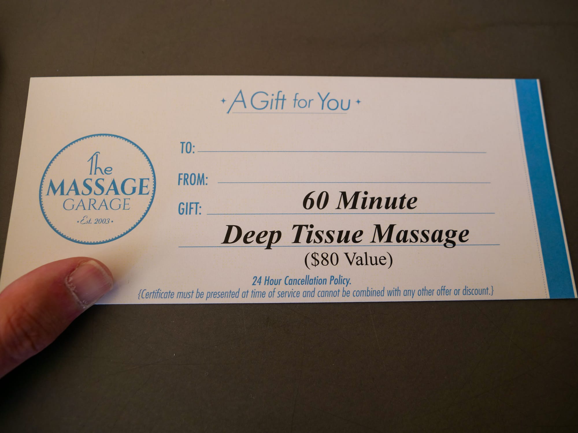 A Massage Gift Certificate from Massage Garage